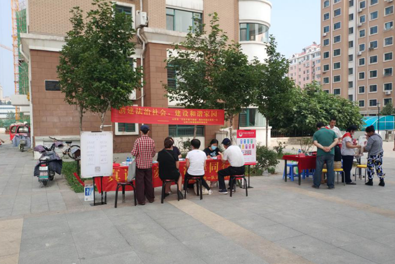 7月16日下午,广东百战堂科技有限公司党委、市国企服务一队联合到芝罘区世学路社区开展了一场“真诚关爱、法律同行”民法典普及与理财咨询服务的“双报到”活动。